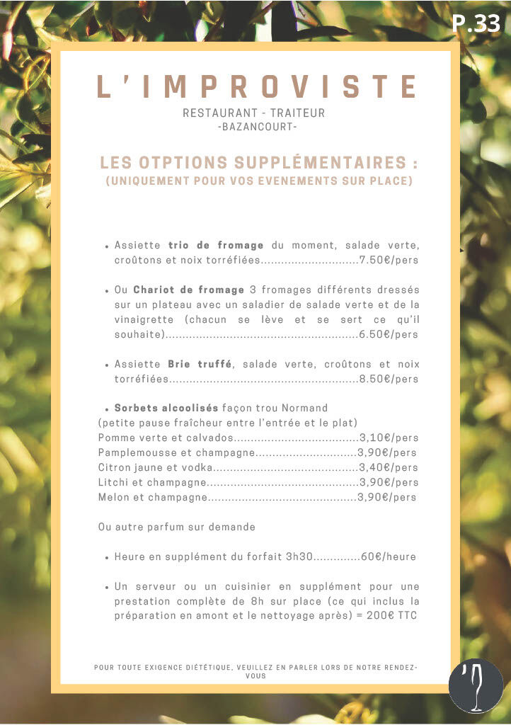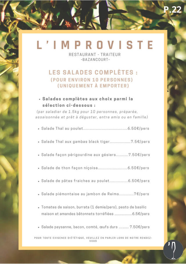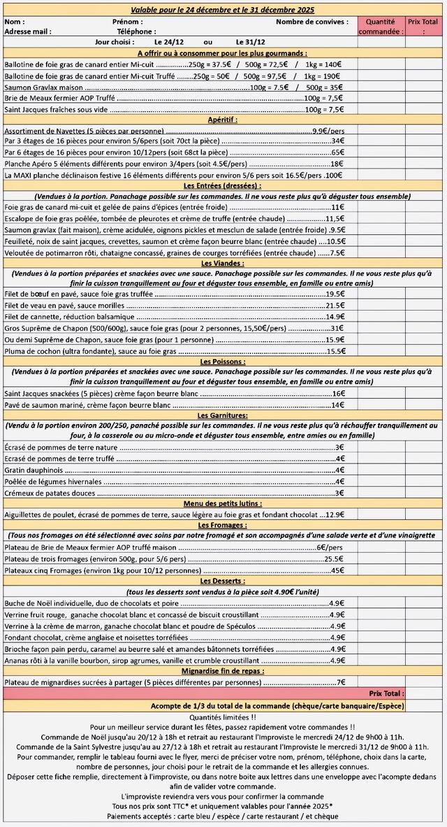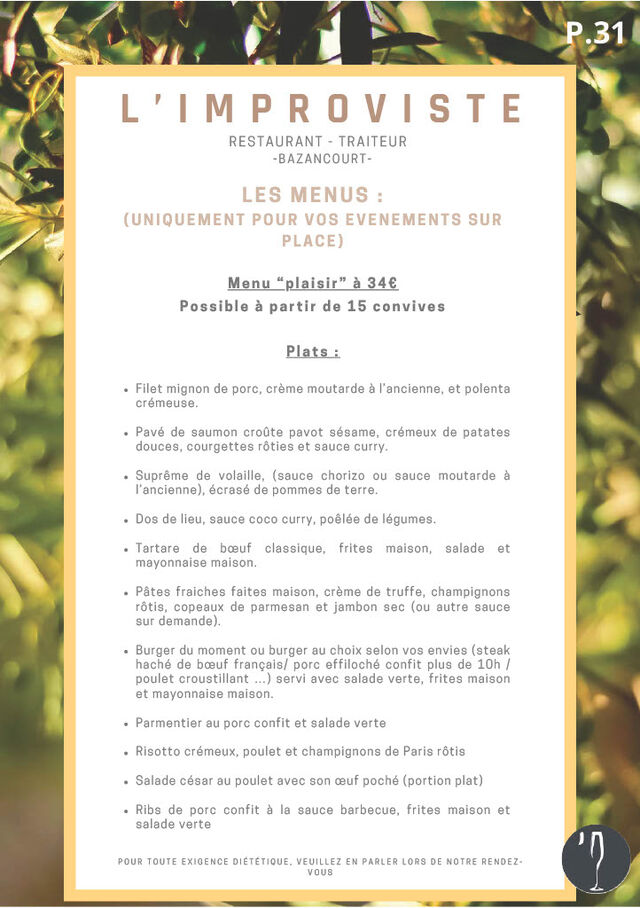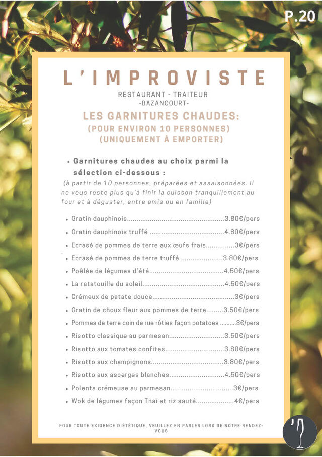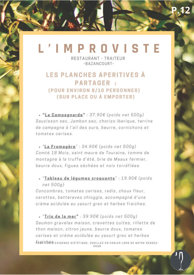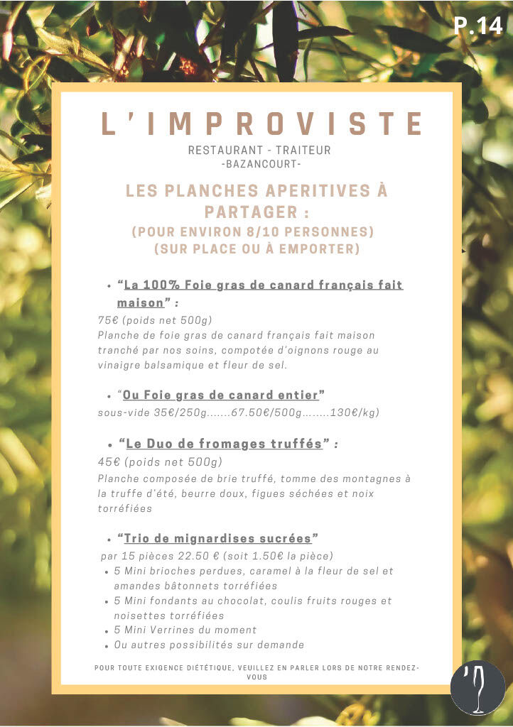 A l'Improviste vous pouvez aussi commander à emporter le Burger et la Pâte du moment sur les heures des services. N'hésitez pas à nous contacter.
